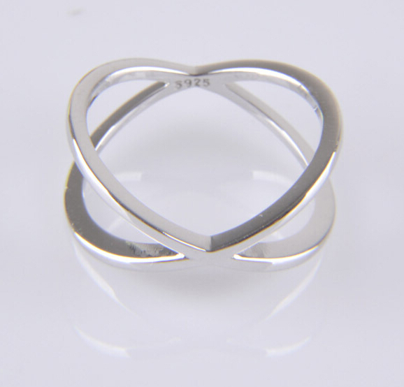交叉 光溜銀戒指