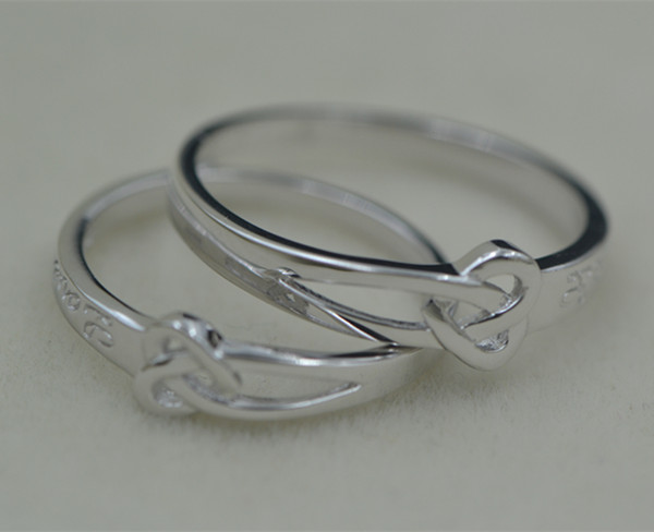 特點:戒指外形同心結設計,表面刻有LOVE字體,採用S925純銀打造,光滑內圈設計。